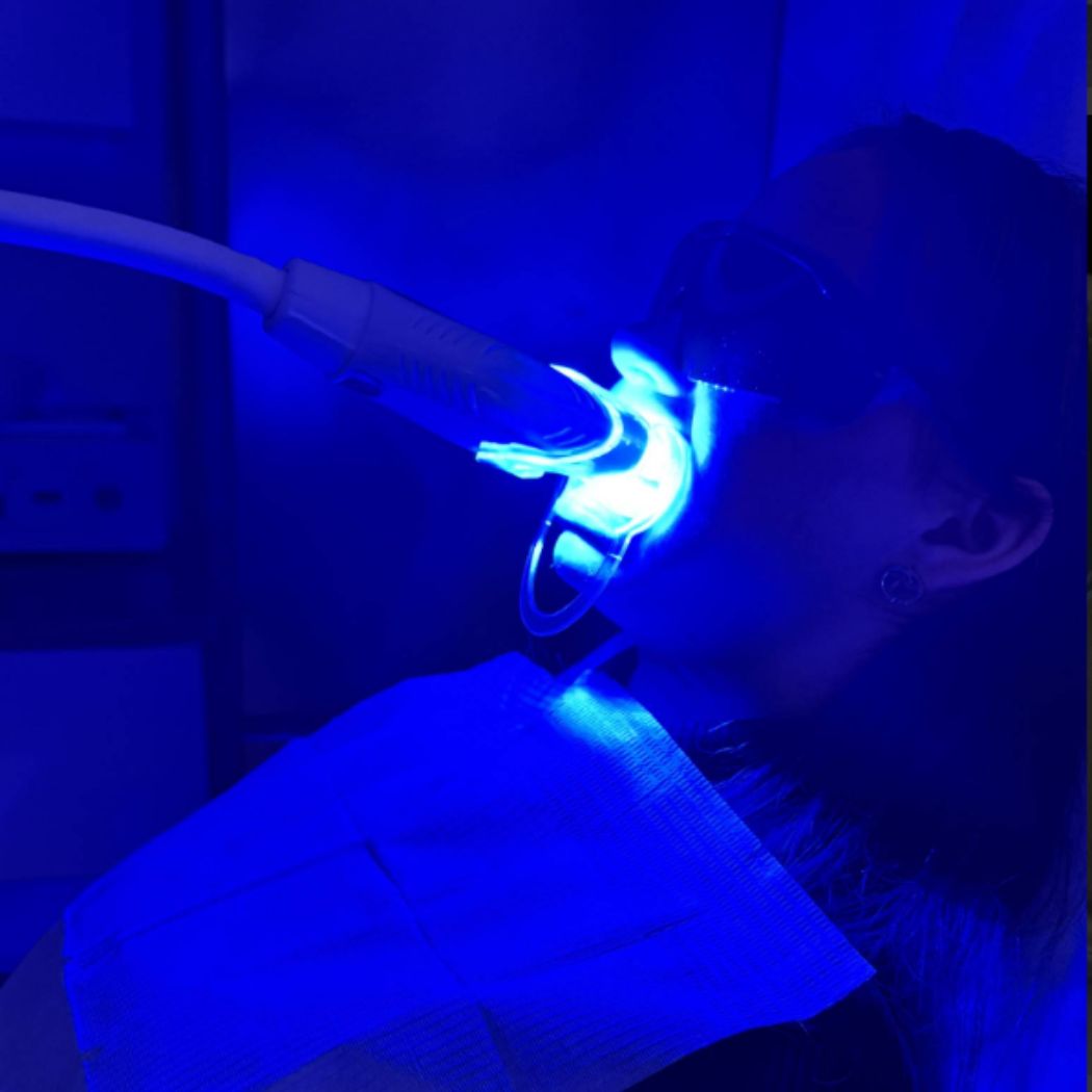 Spezielle Bleaching-Wirkstoffe werden auf die Zahnoberfläche aufgetragen und aktivieren den Aufhellungsprozess, der Farbpigmente im Zahnschmelz sanft auflöst.